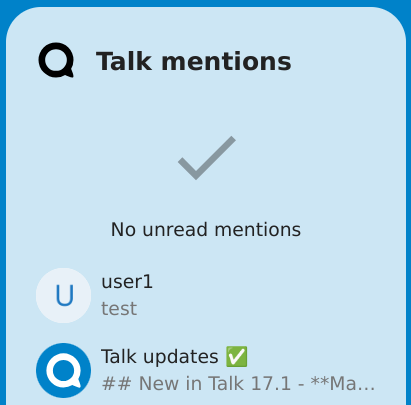 Talk dashboard widget showing half empty content state with a message displayed above a short item list